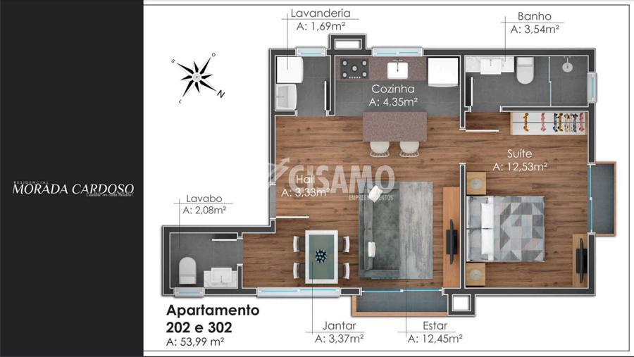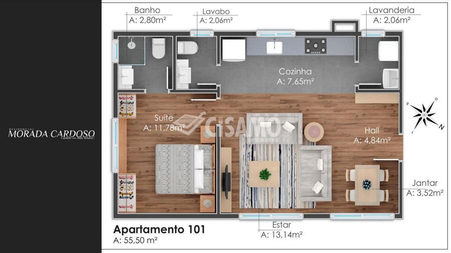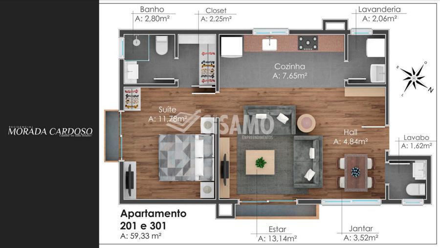 Área Global: 75,78m² | Área Privativa: 59,33m²